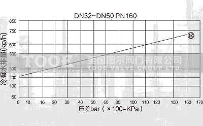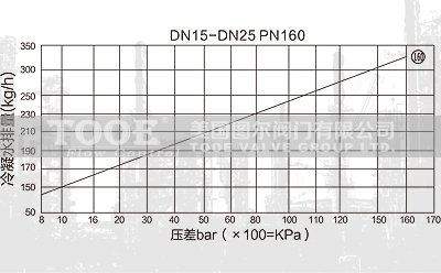 與哪條閥座號線的交叉點的疏水 量值能滿足設備要求,確定該閥 座號后即可確定疏水閥型號。 |